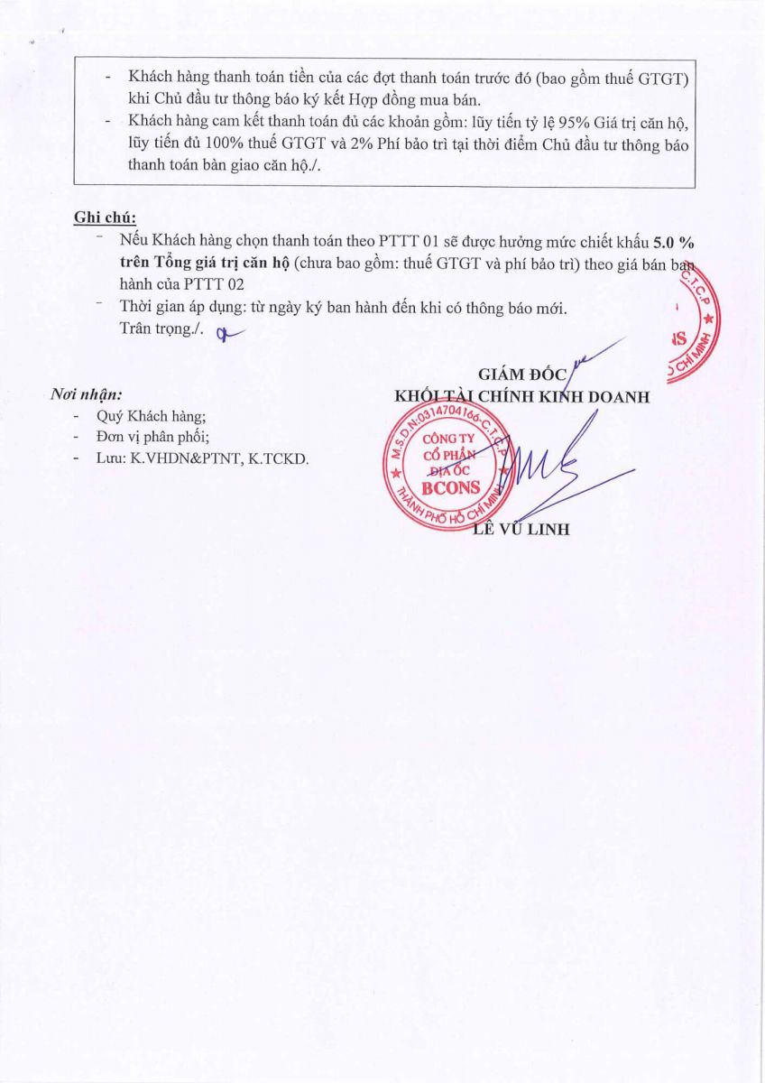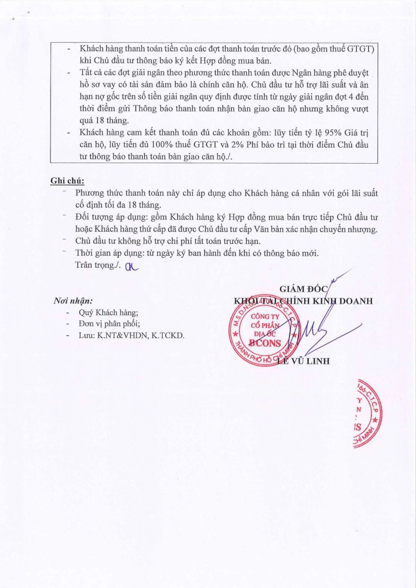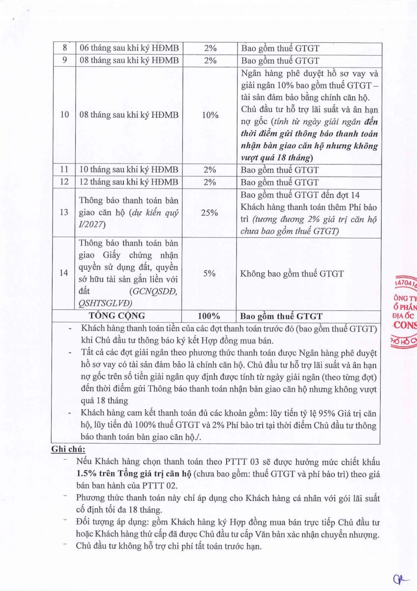 Phương án 1: Thanh toán theo tiến độ, có hỗ trợ vay ngân hàng, được nhận chiết khấu 5% tổng giá bán..jpg)