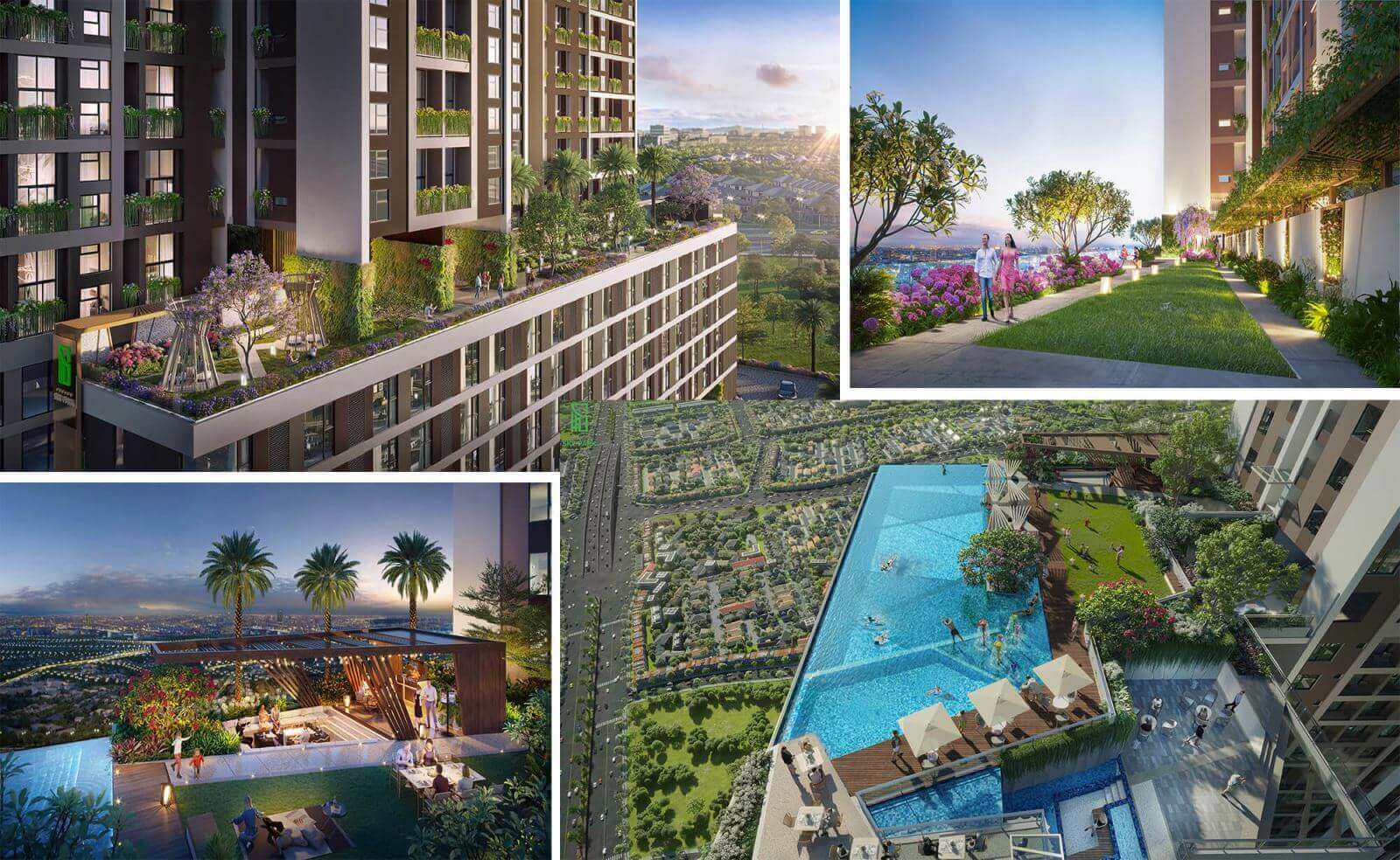 Điểm đặc biệt của dự án là cấu trúc cây sống 3 tầng: “rễ” – tầng đế với loạt tiện ích thiết yếu như shophouse, sân chơi, khu trẻ em, trạm sạc điện, vườn thiền; “thân” – tầng 5 là không gian cộng đồng gồm hồ bơi vô cực, phòng đọc sách, vườn hoa, khu café; “ngọn” – tầng 21 là nơi chăm sóc thể chất với gym, yoga, sân chơi trẻ em, vườn BBQ…