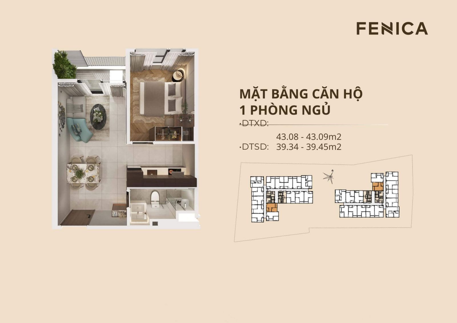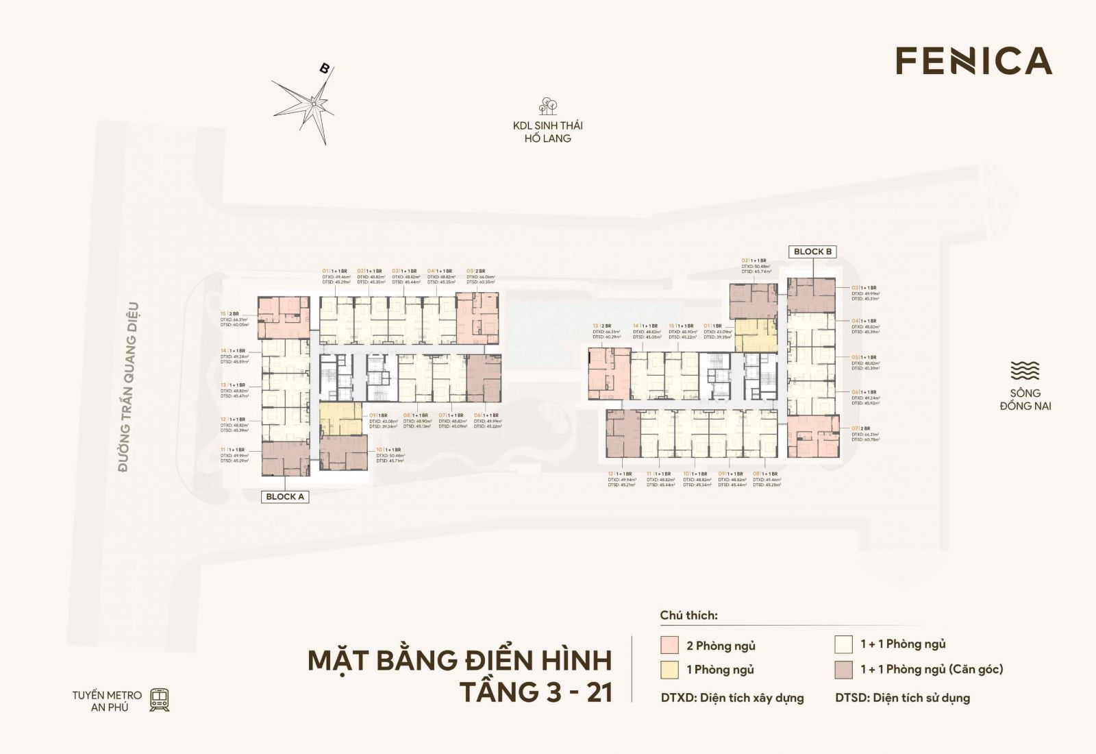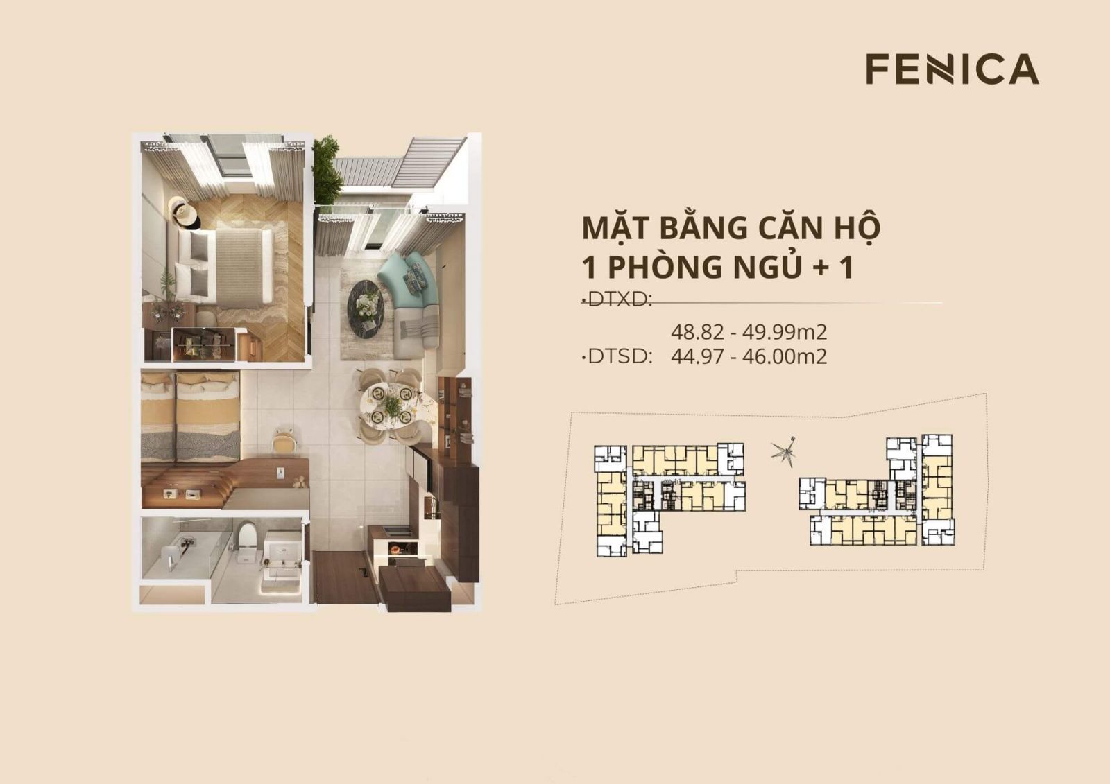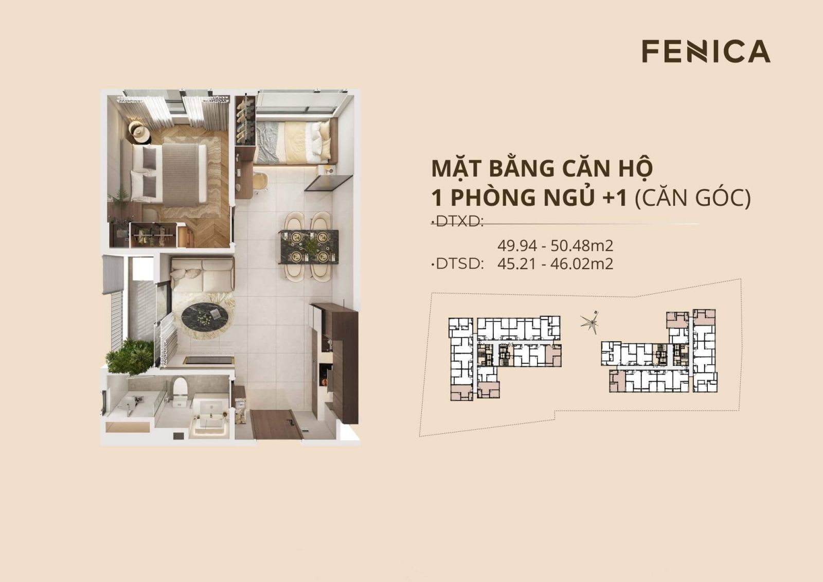 Điểm nổi bật của Fenica là hơn 85% căn hộ có diện tích từ 45 – 65 m², tập trung vào nhóm sản phẩm: