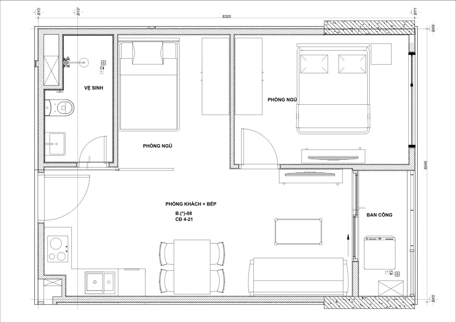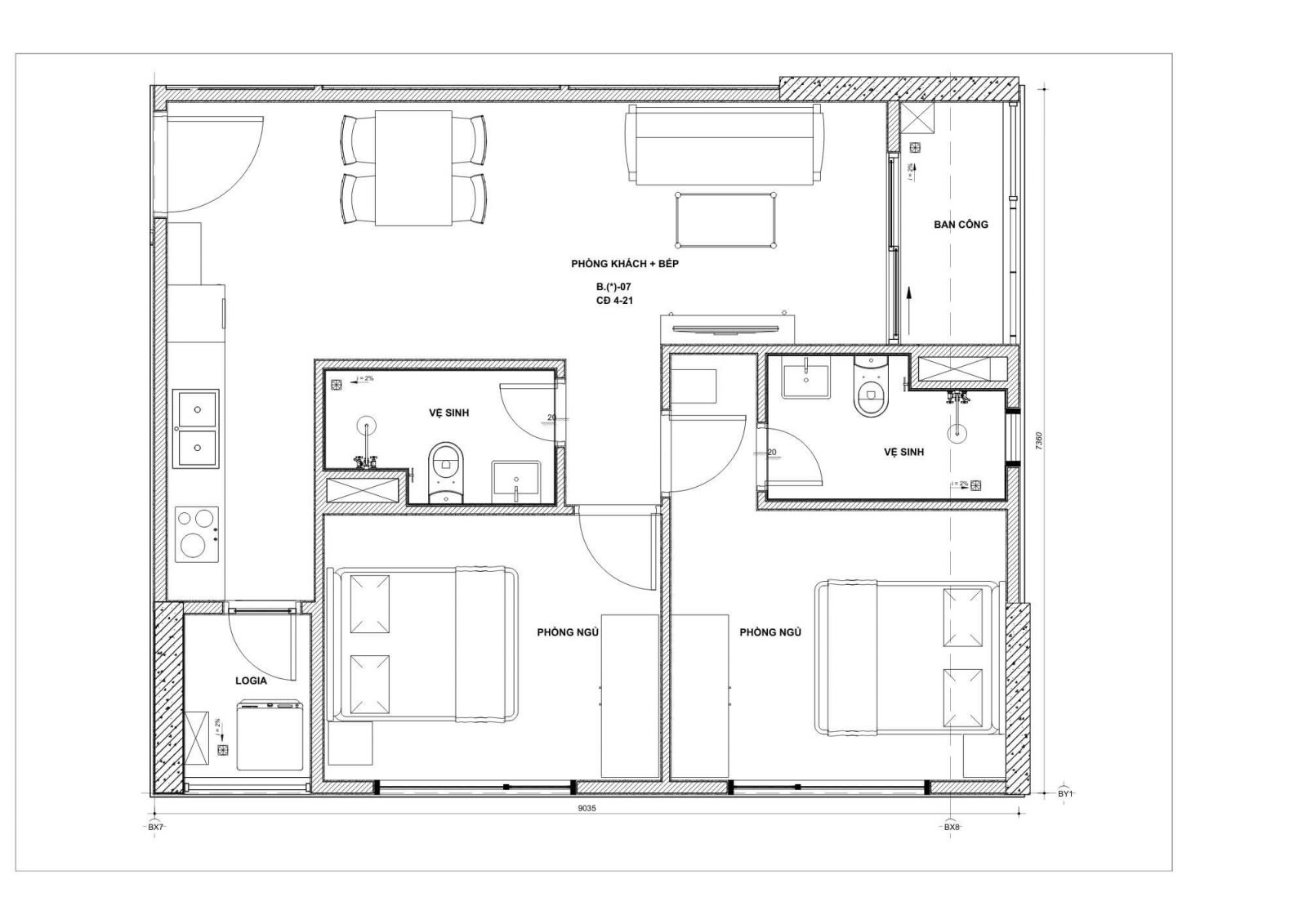 2PN diện tích vừa phải: phù hợp với các cặp vợ chồng trẻ tìm nơi an cư đầu tiên