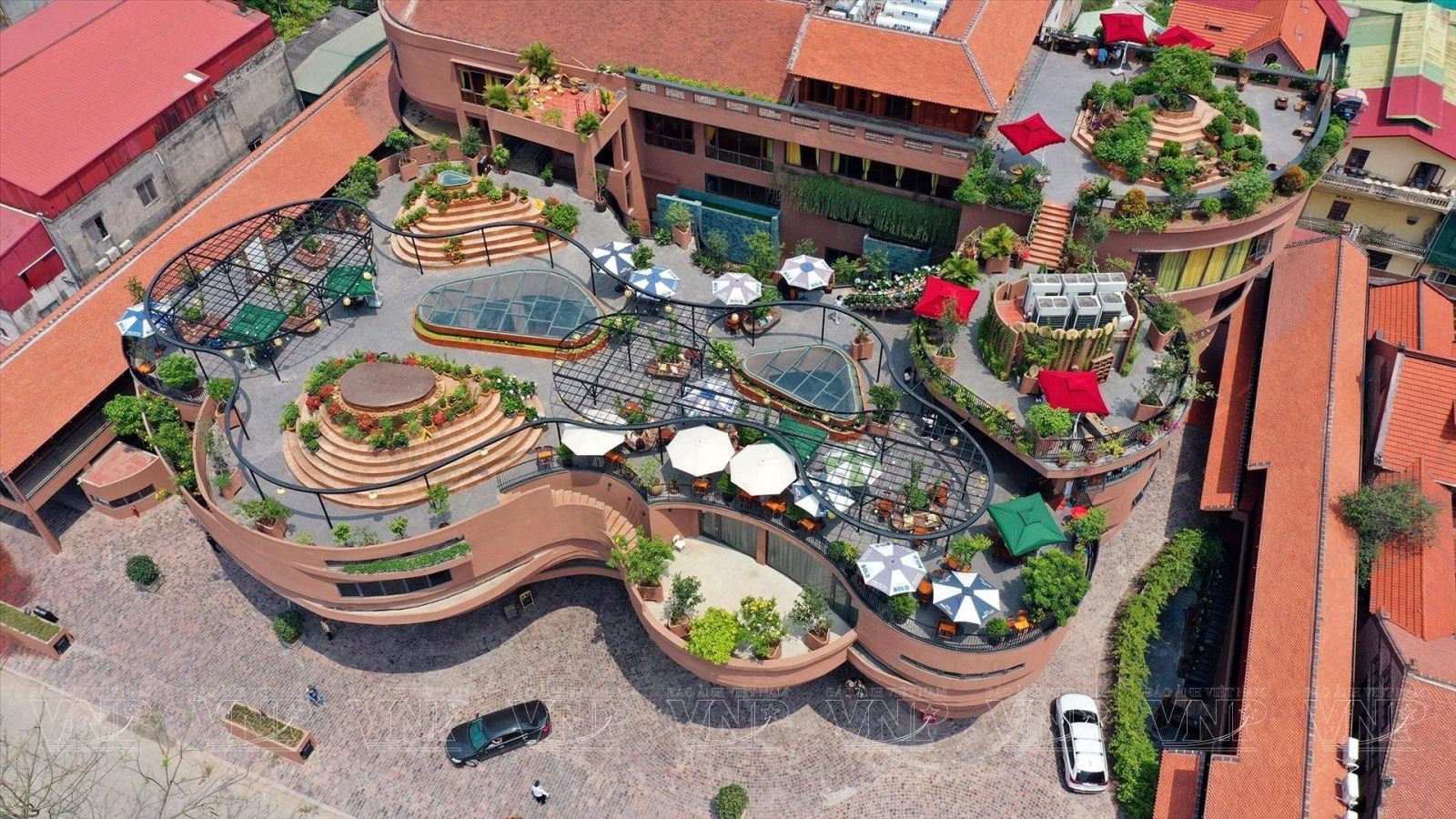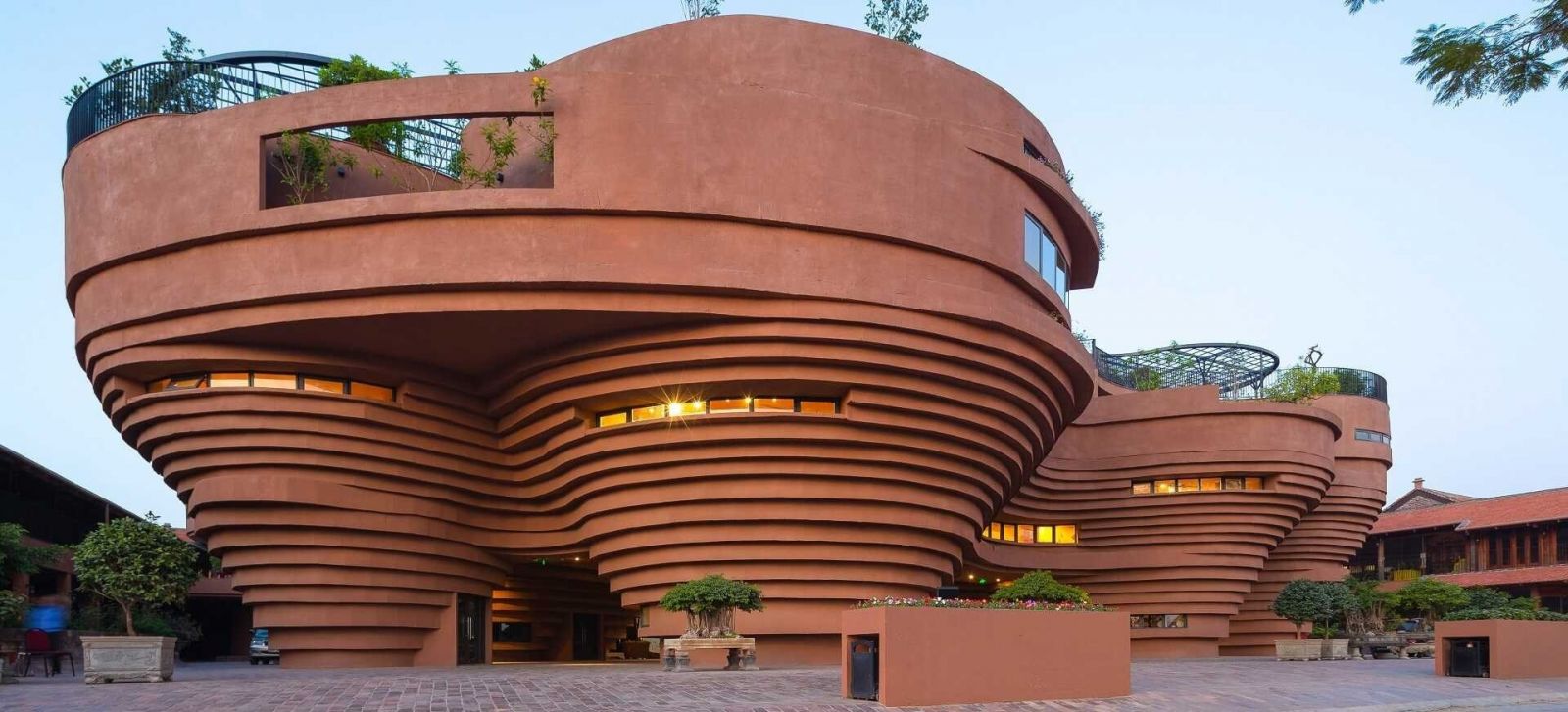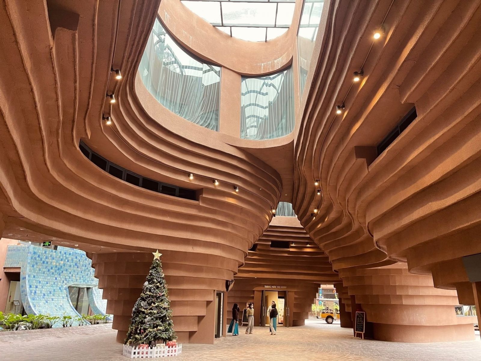 Công trình này nổi bật với thiết kế ấn tượng từ 7 khối xoắn ốc lớn, mô phỏng chiếc bàn xoay – một công cụ quen thuộc trong nghệ thuật gốm truyền thống. Các khối kiến trúc được xếp chồng theo chiều xoáy, tạo nên tổng thể độc đáo, vững chắc và mềm mại.