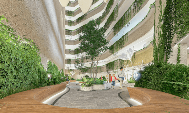 Bên trong, dự án tích hợp hơn 30 tiện ích nội khu cao cấp, từ hồ bơi tràn bờ, khu gym – yoga, 7 tầng xanh cùng vườn treo xuyên tầng, cho đến loạt không gian “chill” đúng gu giới trẻ như vườn năng lượng, vườn đọc sách, vườn nhiệt đới, Healing Park hay vườn thiền thư giãn. Tất cả được tính toán để kiến tạo một hệ sinh thái sống chuẩn “work-life balance”.