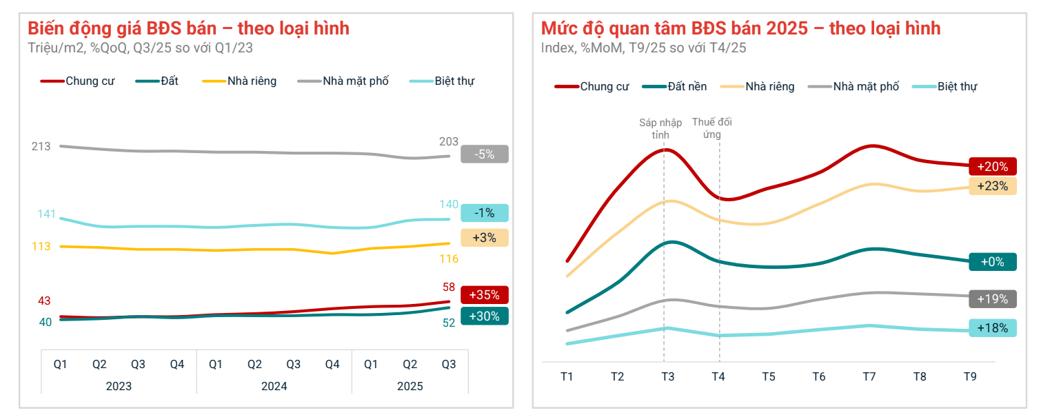 Đáng chú ý, phân khúc căn hộ chung cư dẫn đầu đà tăng, với giá bán trung bình tăng đến 35% và lượng tìm kiếm tăng 20% so với cùng kỳ. Điều này cho thấy, sau giai đoạn sáp nhập và tái cấu trúc không gian đô thị, TP.HCM đang bước vào chu kỳ tăng trưởng mạnh, với động lực đến từ ba trục chiến lược phát triển mới: