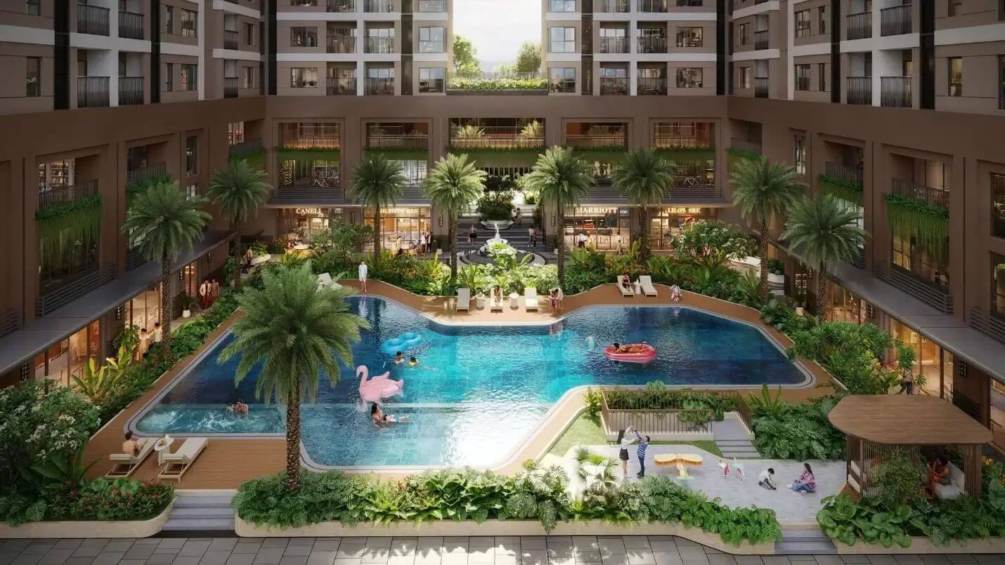 Tiện ích cao cấp: hồ bơi tràn bờ, phòng gym, vườn thiền, co-working space, khu vui chơi trẻ em.