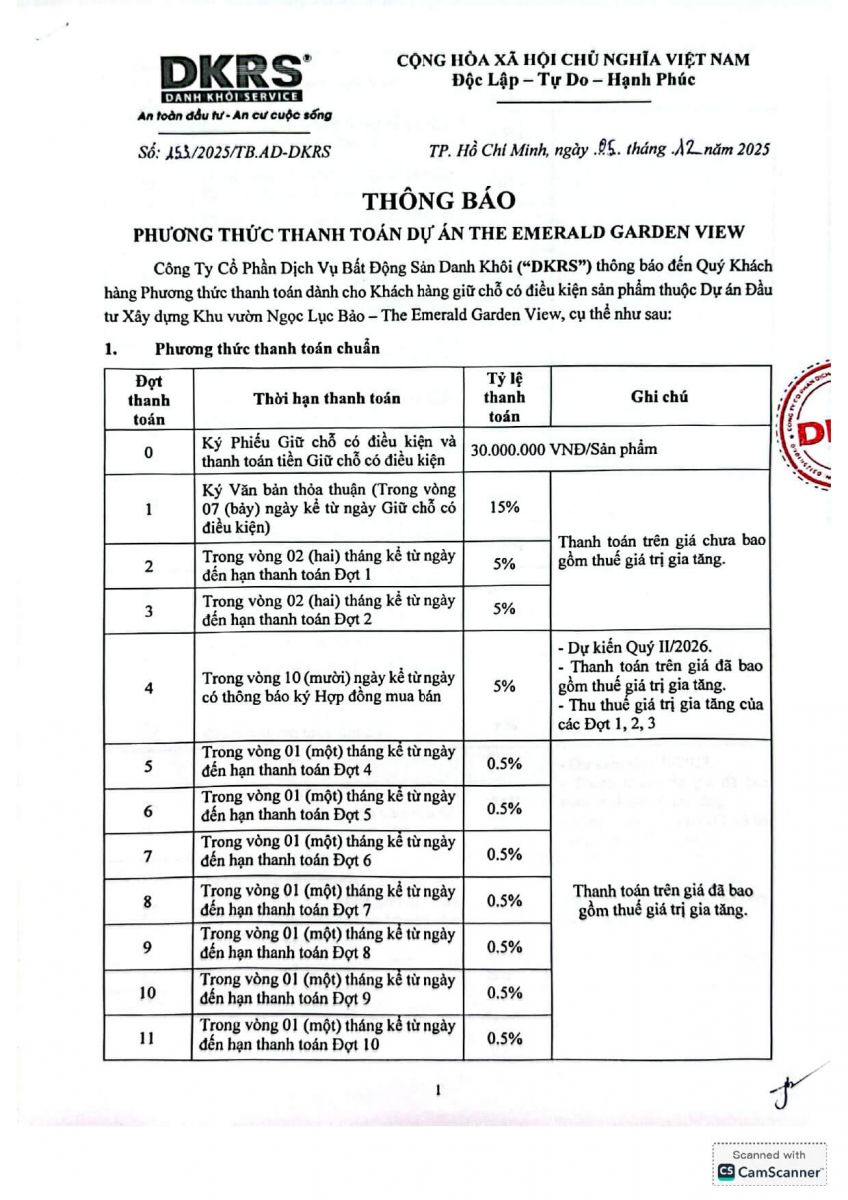 PHƯƠNG THỨC THANH TOÁN DỰ ÁN THE EMERALD GARDEN VIEW