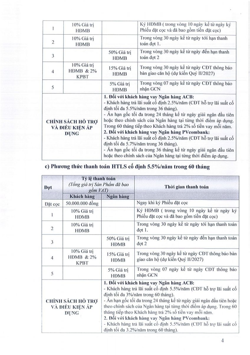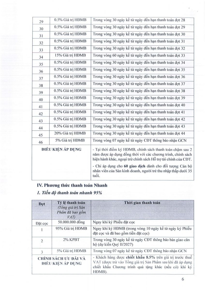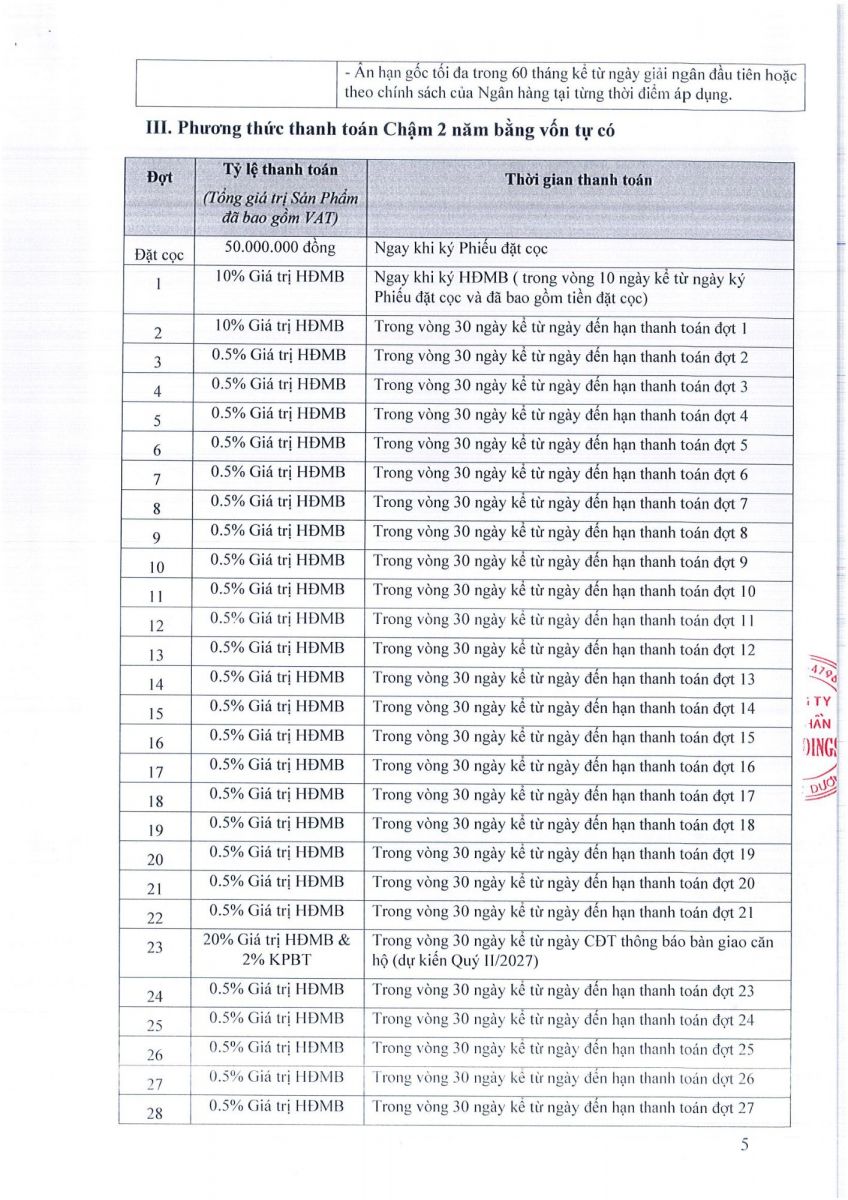 Thanh toán 50% đến khi nhận nhà, phần còn lại trả góp không lãi trong 2 năm