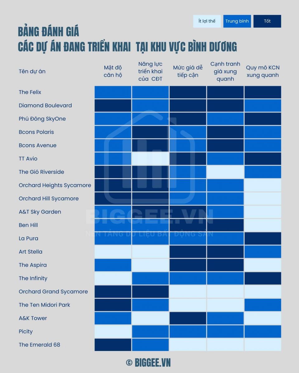 Qua phân tích 5 tiêu chí, có thể thấy mỗi dự án tại Bình Dương đều sở hữu lợi thế khác nhau, phù hợp với từng nhóm khách hàng: