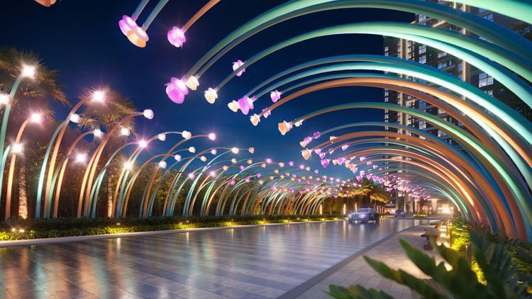 Cư dân khi bước vào dự án sẽ trải qua Sensory Gate – con đường ánh sáng độc đáo, dẫn lối đến loạt trải nghiệm sống đẳng cấp. Amazon Park – công viên đa thế hệ xanh mát, Galaxy Pool – hồ bơi khoáng muối công nghệ Nhật, cùng sảnh chờ theo phong cách Quiet Luxury đều mang lại cảm giác sang trọng, thư thái.